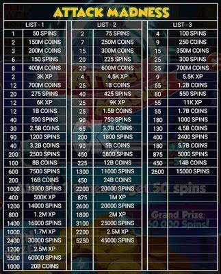 coin master attack madness prize list